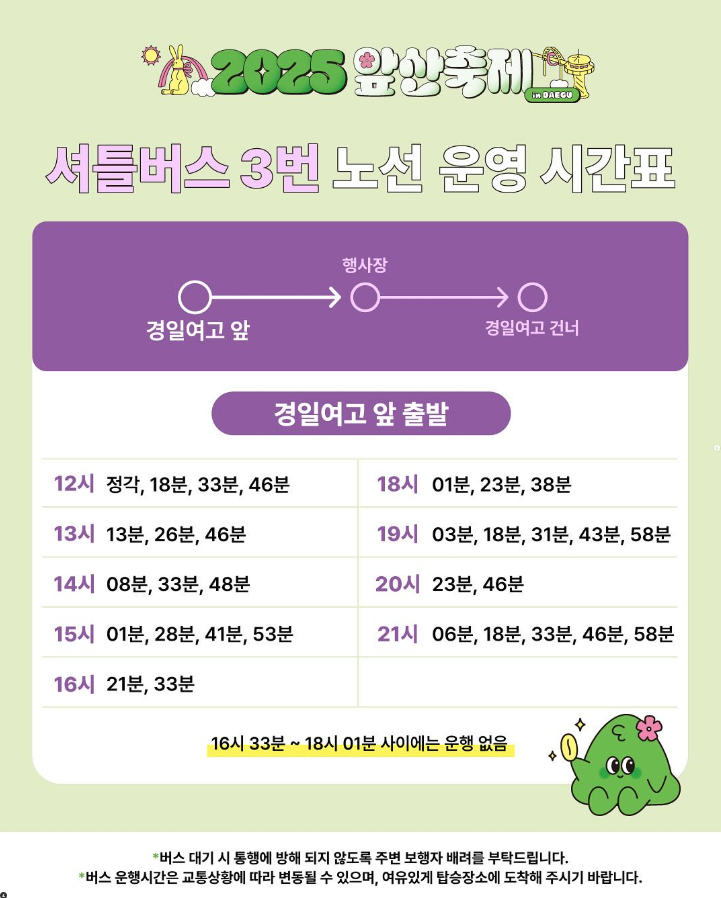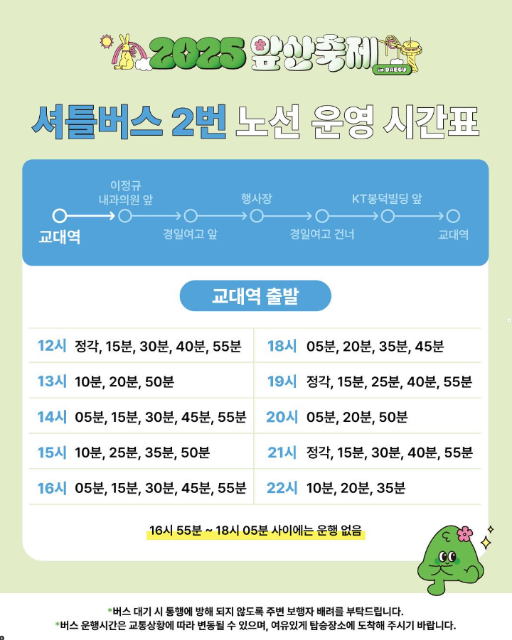 - 주차: 앞산공원 주차장 및 남구청 임시 개방