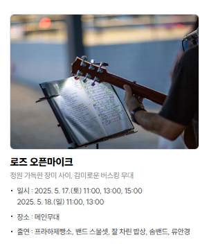 - 오픈마이크: 누구나 참여 가능한 자유 무대