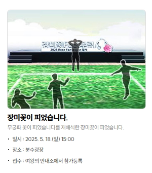 - 축제명: 2025 장미꽃 필(Feel) 무렵