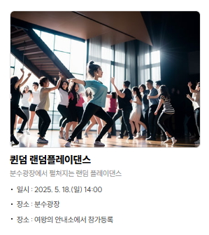 - 랜덤플레이댄스: 음악만 나오면 어디든 무대!
