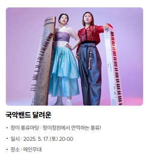 - 장미풍류마당: 국악과 퓨전음악이 어우러진 특별한 콘서트