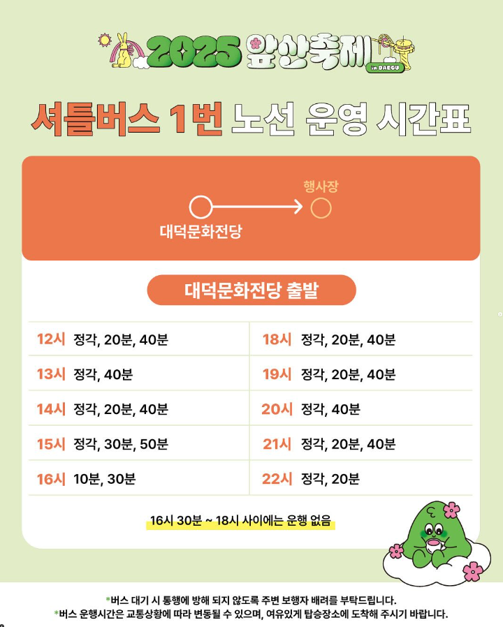 - 주차: 앞산공원 주차장 및 남구청 임시 개방