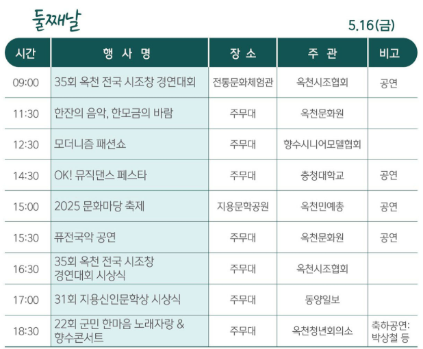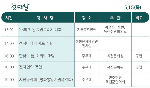 - 5월 15일(목) 지용학당, 시낭송 버스킹, 축제 개막