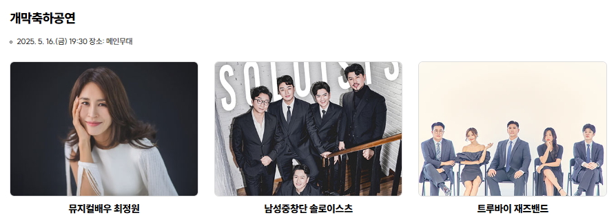 - 개막축하공연: 뮤지컬 배우 최정원의 감동 무대
