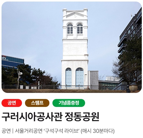 - ‘정동야행 리플릿’ 지참 시 일부 유료 공연 입장료 30% 할인 가능 (페인터즈 등)